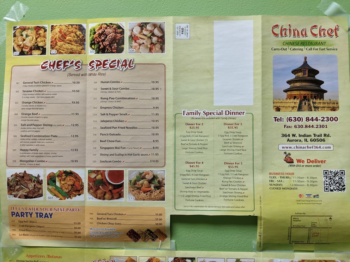 Located at 364 W Indian Trail in Aurora, IL, China Chef Restaurant is a local gem known for its authentic Chinese cuisine. The menu boasts a variety of dishes that invite you to explore rich flavors and textures. Customers rave about the homemade shrimp egg rolls and potstickers, highlighting their extraordinary freshness and crispy perfection.